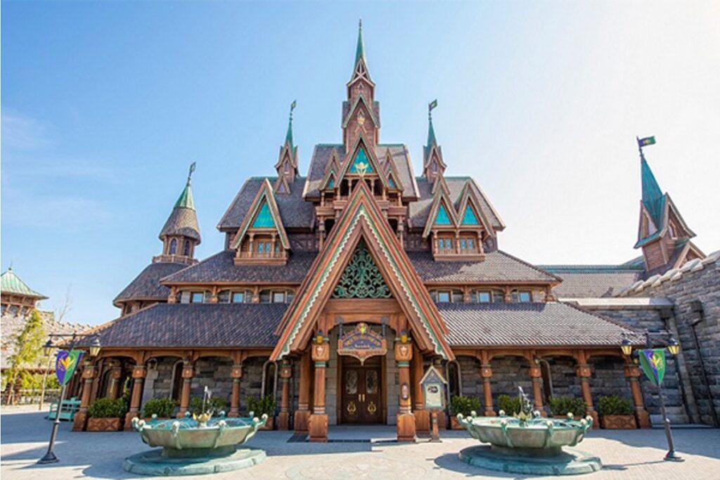 『アナと雪の女王』の世界を再現し、アレンデール城内のダイニングをイメージしたレストラン。パイ包み焼きやムースなど、北欧風の料理が楽しめ、物語に浸りながら食事をしたい人に最適です。