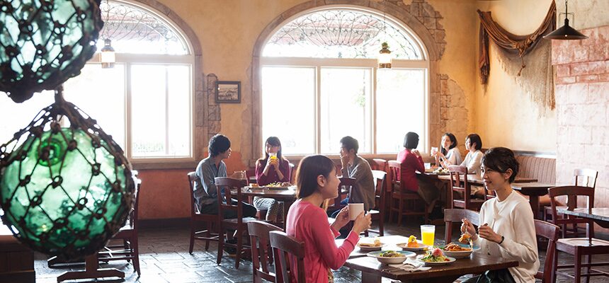 ディズニーシーで唯一の和食レストラン。懐かしい日本の港町をイメージした空間で、ほっと心が安らぐ料理を提供します。天ぷらや魚料理、ヒレカツ膳など、幅広い世代に愛されるメニューが揃い、外国人観光客にも人気。プライベートラベルの日本酒や和スイーツも楽しめ、和の文化を味わいたい旅行者にぴったりです。